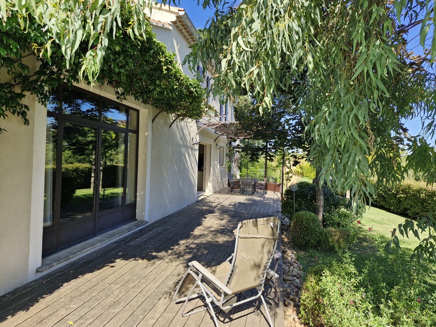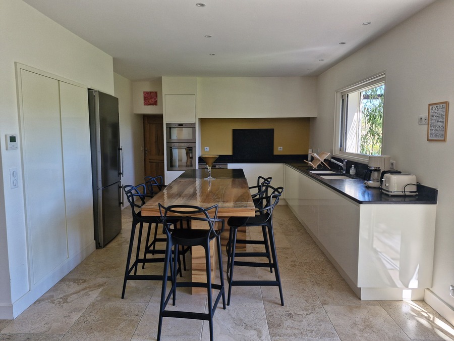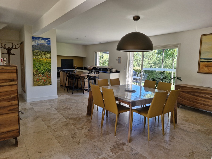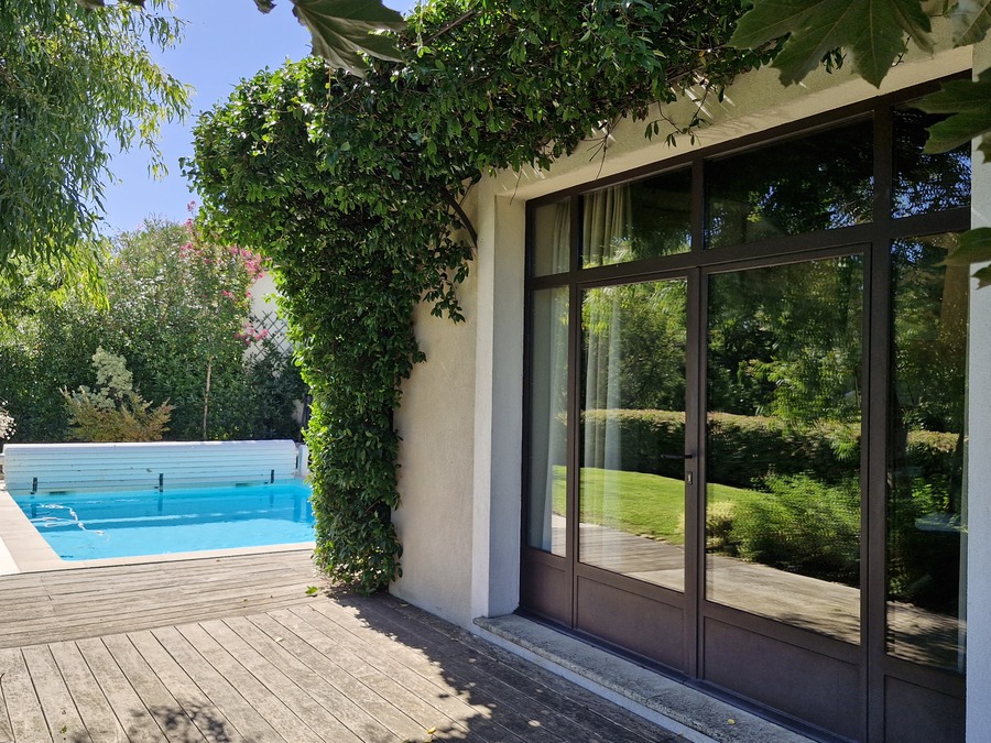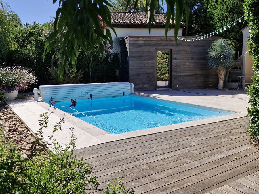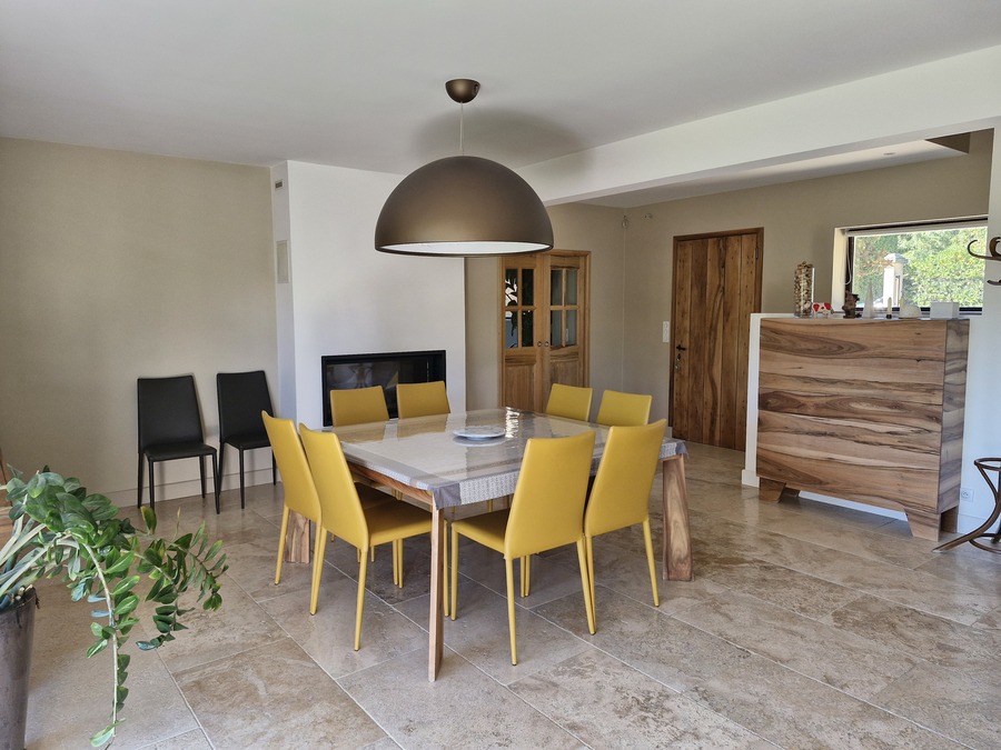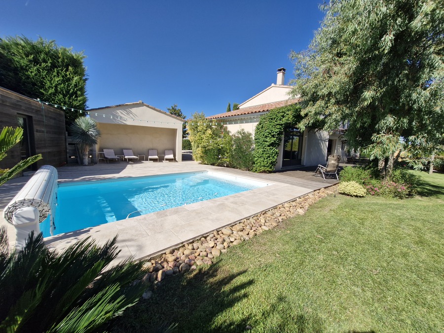 Cette villa de 160 m² allie confort moderne et ambiance chaleureuse, avec un jardin clos et élégant, une piscine au sel et une grande terrasse idéale pour profiter de la douceur de vivre et des moments conviviaux en plein air.