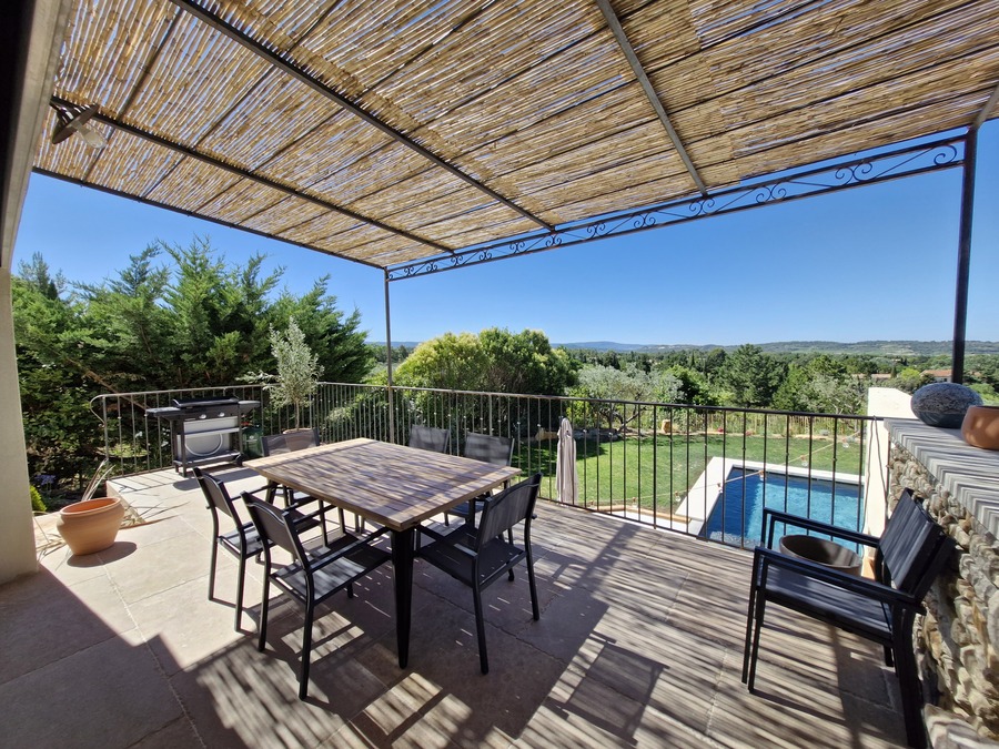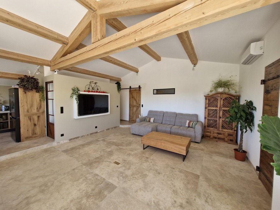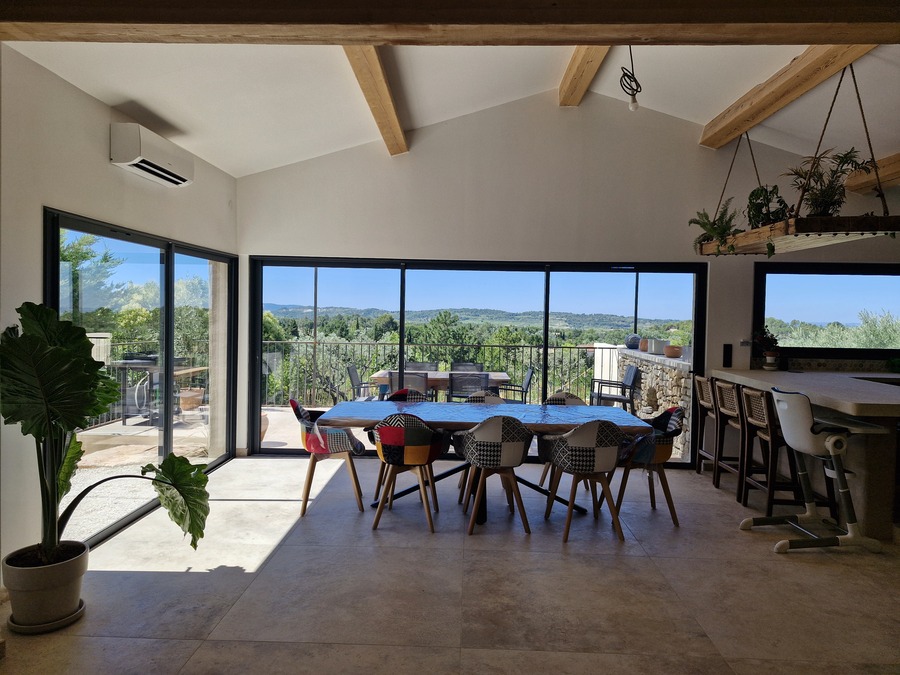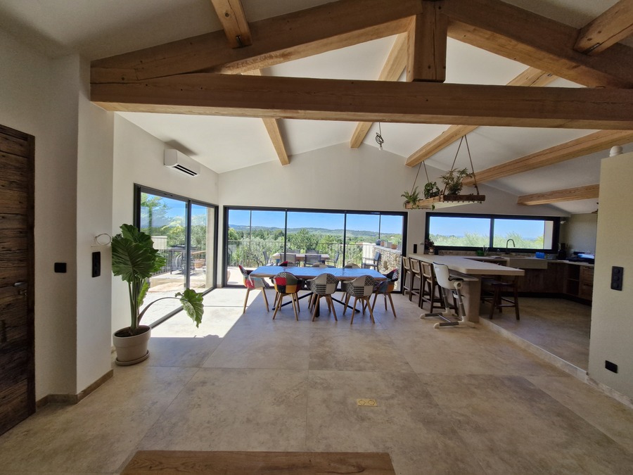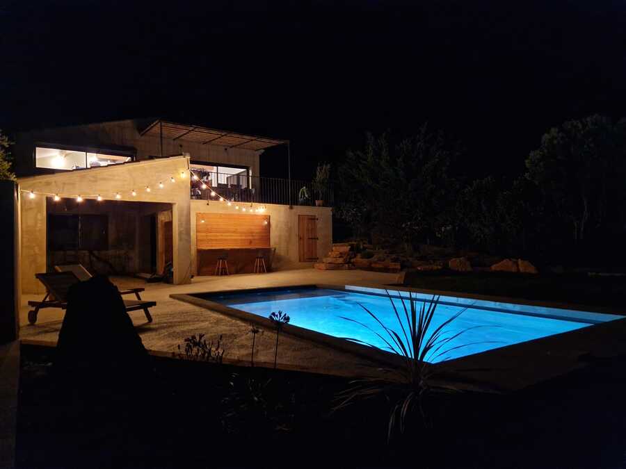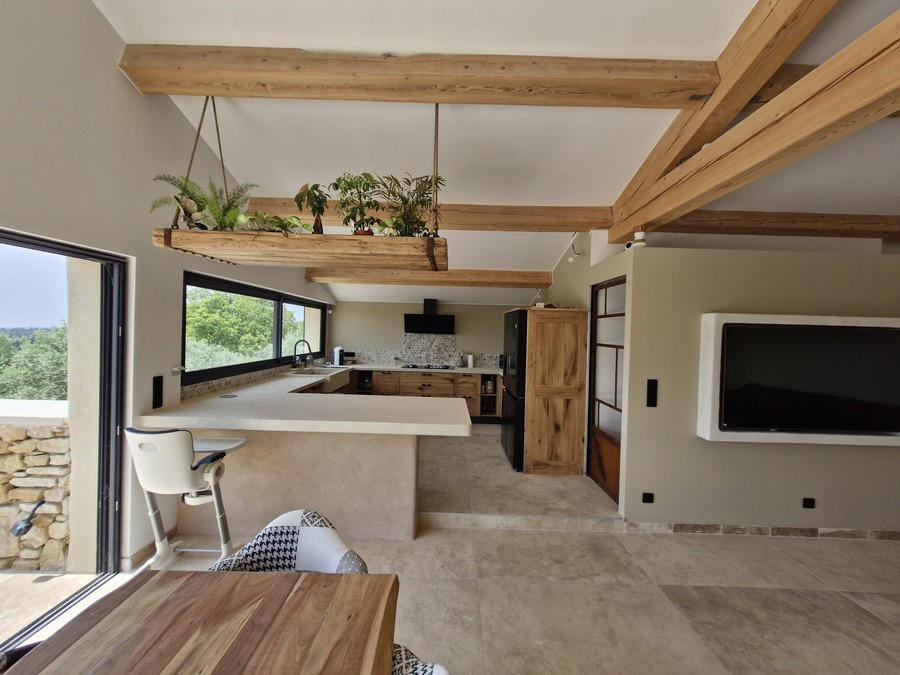 Sa grande pièce de vie s’ouvre sur une terrasse suspendue au-dessus du paysage, et sa piscine, nichée au milieu de la verdure, fait de ce lieu un espace unique où confort et beauté se rencontrent.
