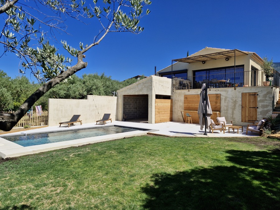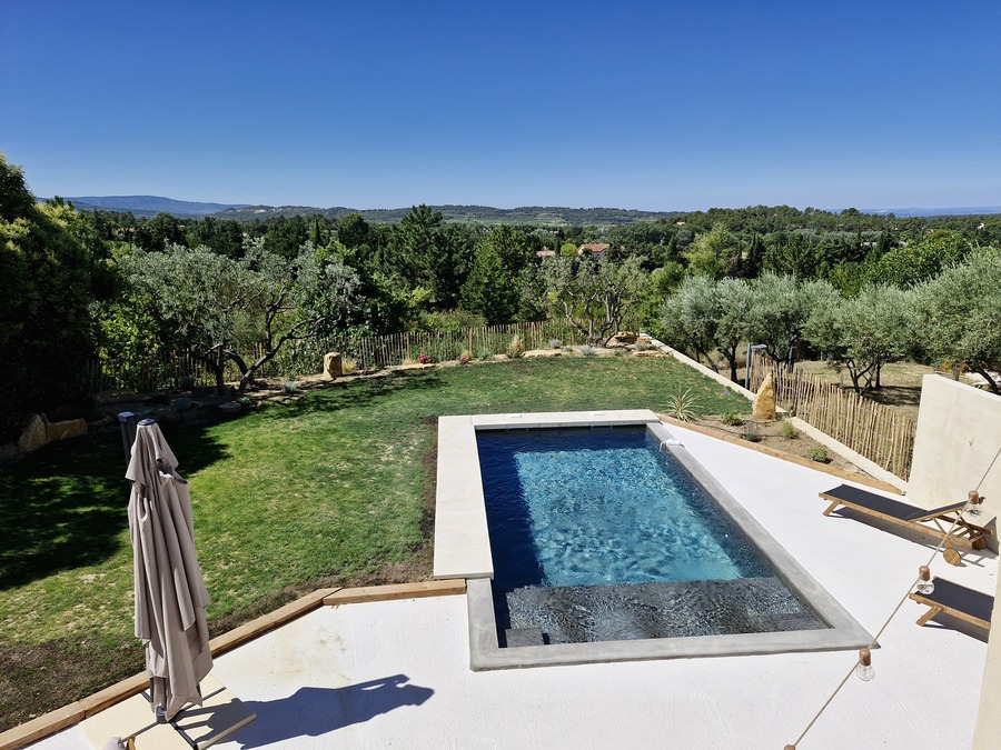 La Villa L’Horizon, située dans le charmant village de Bédoin, se distingue par son design moderne, ses matériaux nobles et sa luminosité exceptionnelle, offrant une vue panoramique à couper le souffle sur la vallée et le Mont Ventoux.